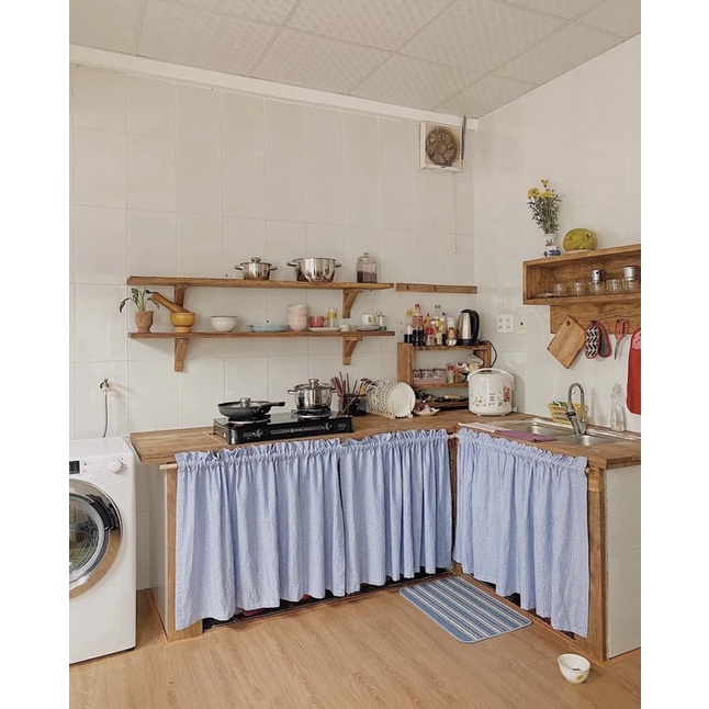 RÈM CHE TỦ BẾP🍋 2 kiểu rèm phù hợp lựa chọn: luồn thanh treo (không bao gồm) hoặc rèm dán (không dán trên thanh nhôm/kính hoặc bề mặt bê tông)