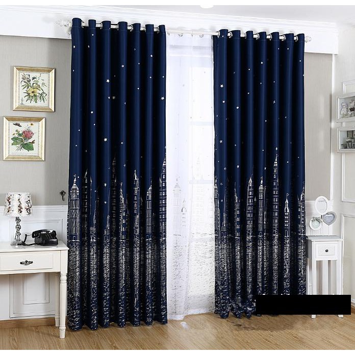 Nhà cửa & Đời sống > Trang trí nhà cửa > Rèm cửa, màn che || rèm cao cấp họa tiết Thành Phố ( Chất Vải dày , màu xanh đen )Còn hàng