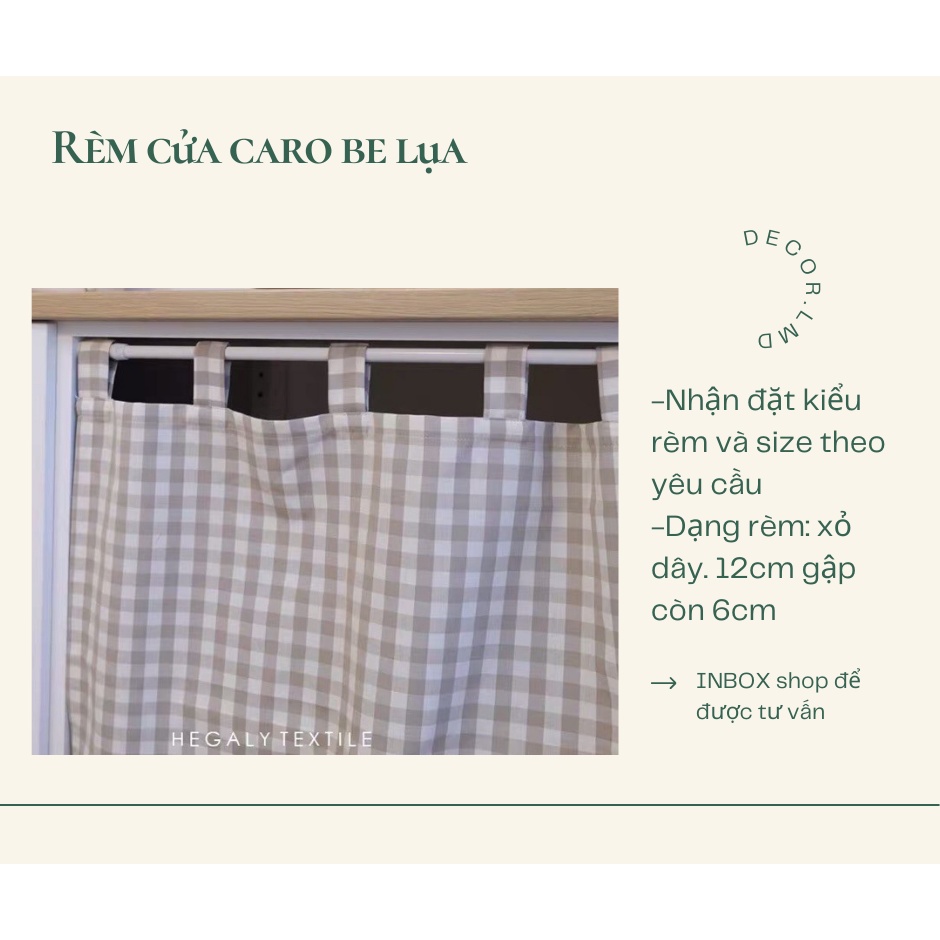 Rèm che kệ bếp caro phong cách vintage vải mịn,chống nắng cao cấp, màn vải treo tường trang trí decor phòng ngủ
