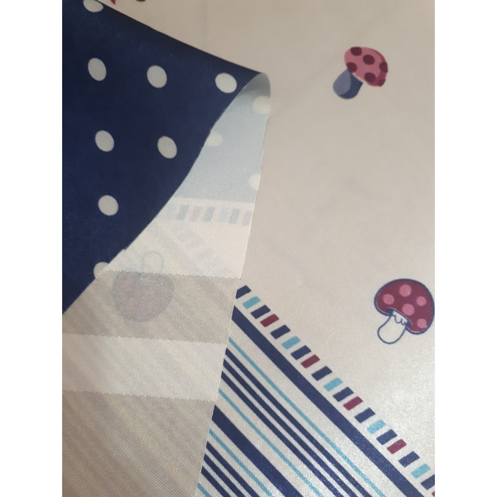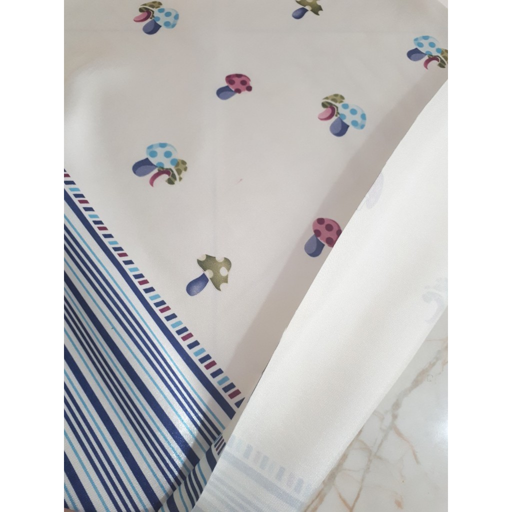 * Chât liệu: vải sợi dày dặn, sờ vô mát tay. Rèm với họa tiết những chú nấm nhỏ phối sọc xanh nhìn rất đáng yêu làm tăng sự trẻ trung và năng dộng cho ngôi nhà bạn .