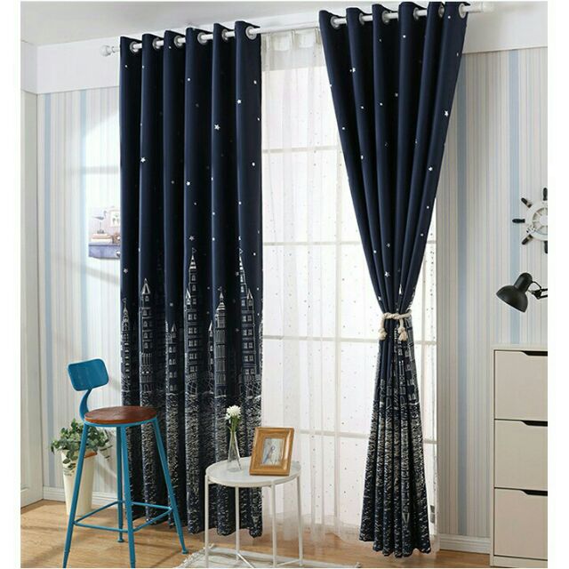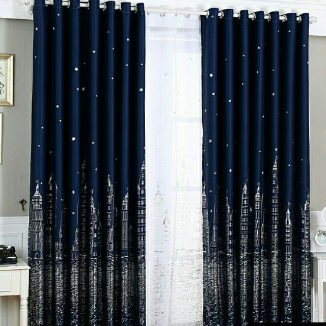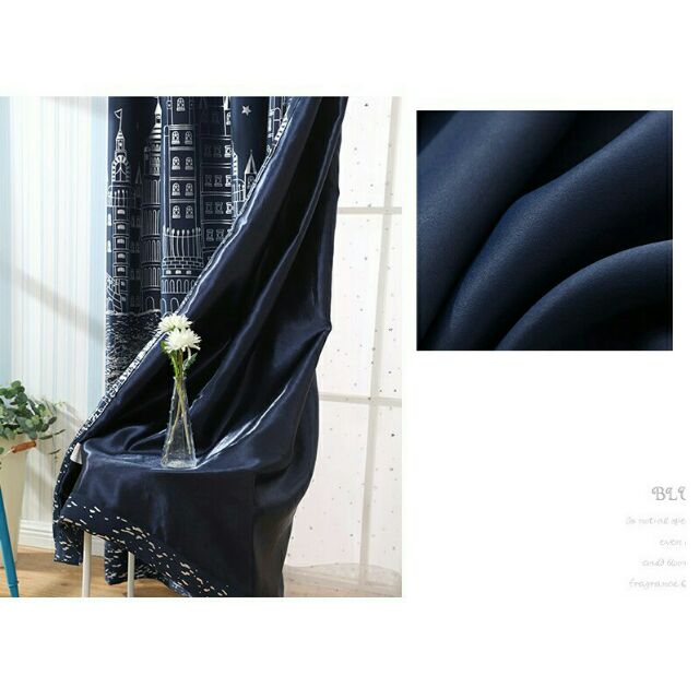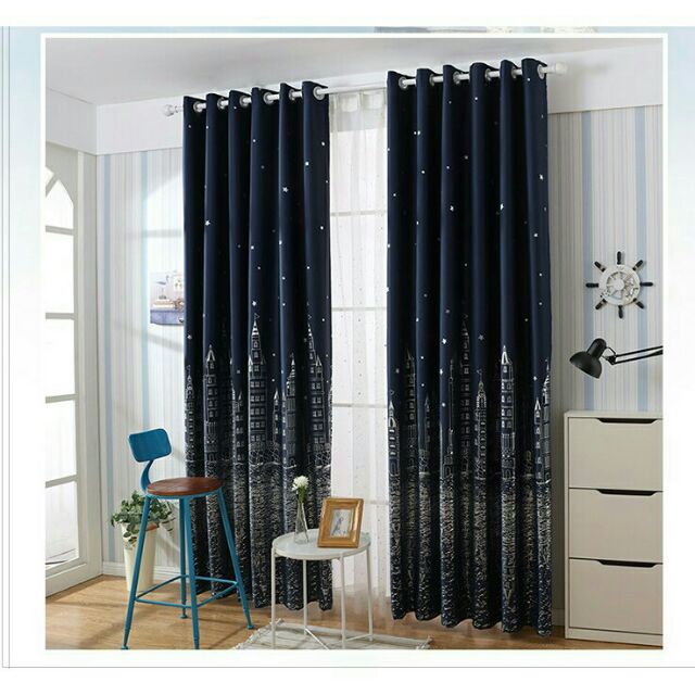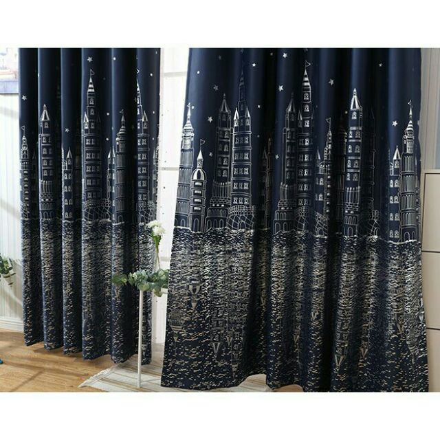 Nhà cửa & Đời sống > Trang trí nhà cửa > Rèm cửa, màn che || Rèm cửa cao cấp ( vải dày) màu xanh đen - họa tiết thành phốCòn hàng