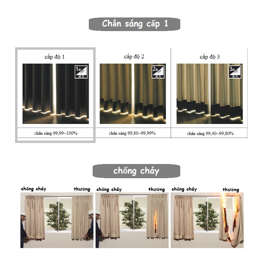 * Ngoài tính năng chống cháy, rèm còn có các tính năng khác như: