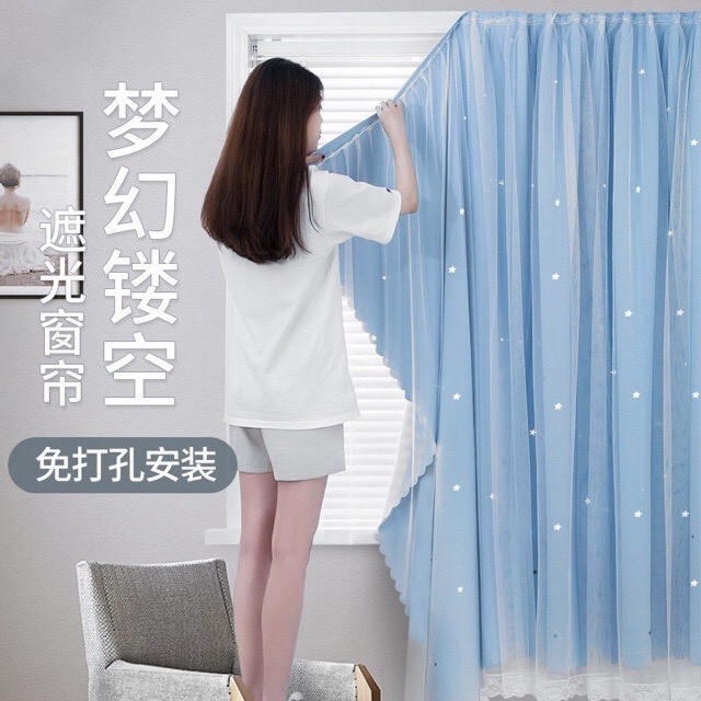 Rèm Cửa Dán 2 Lớp Hoạ Tiết Sao Siêu Long Lanh - Tiện Lợi Không Cần Khoan Tường Dễ Dàng Vệ Sinh👉🏻Bống Bee xin giới thiệu RÈM 2 LỚP siêu xinh siêu tiện ạ !