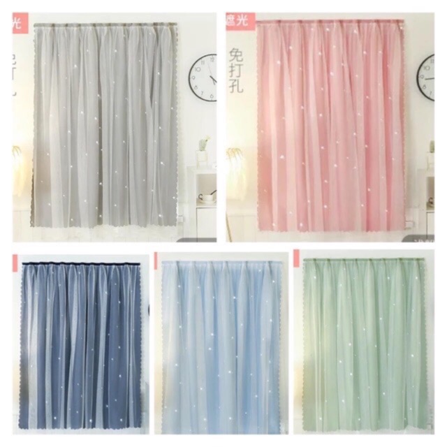 #Rèm_Cửa_Dán 2 Lớp Hoạ Tiết Sao Long Lanh Tiện Lợi Không Cần Khoan Tường Dễ Vệ Sinh👉🏻Feature: