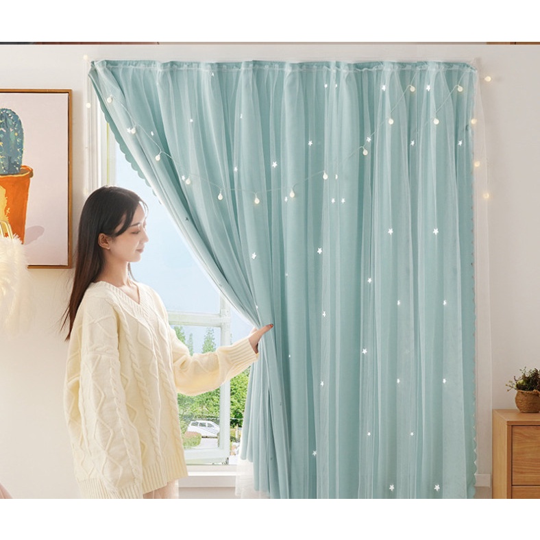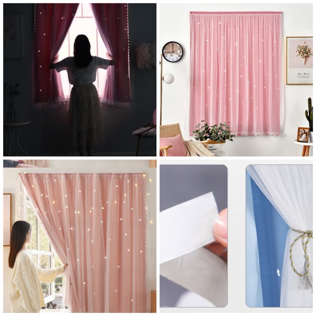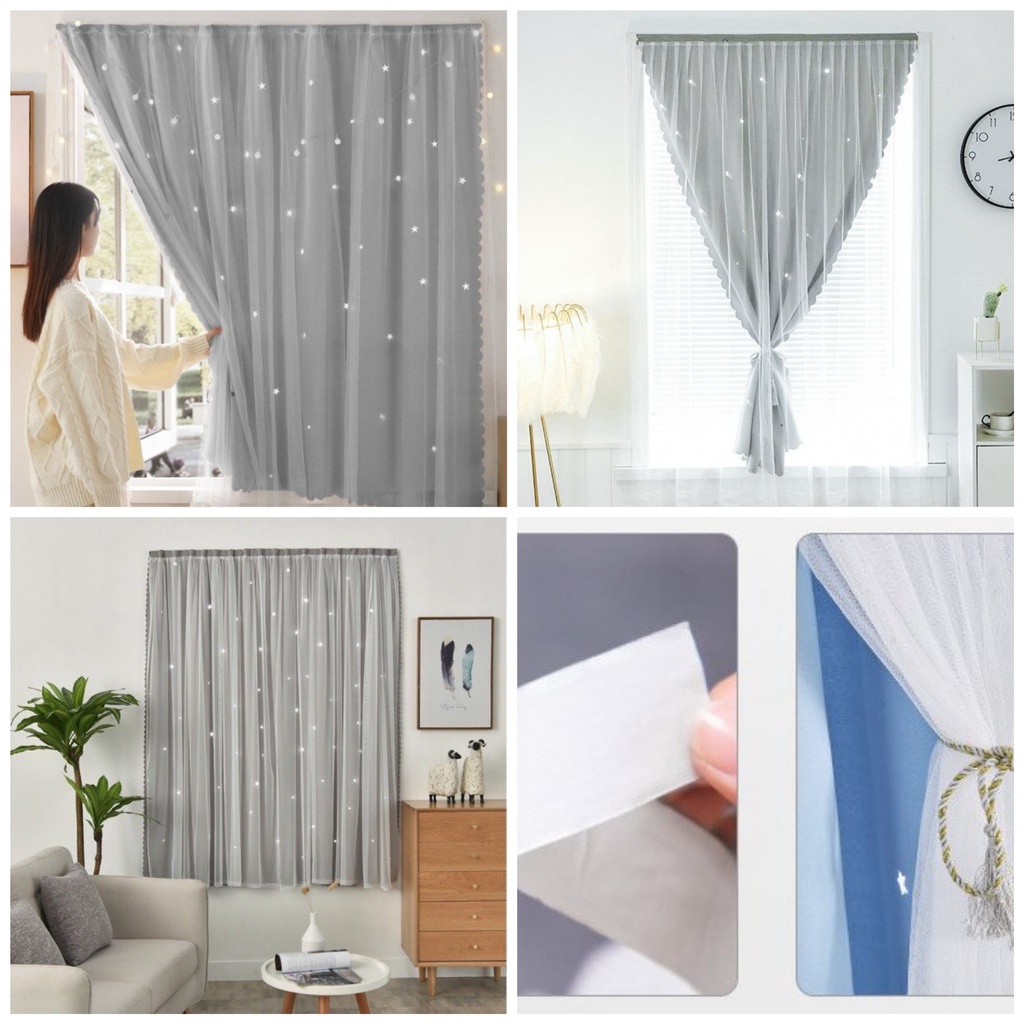 Nhà cửa & Đời sống > Trang trí nhà cửa > Rèm cửa, màn che || Rèm cửa dán HAI LỚP không cần thanh treo chống nắng tốt - TẶNG DÂY CỘT RÈM VÀ MIẾNG DÁNCòn hàng