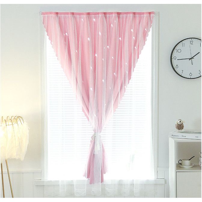 Nhà cửa & Đời sống > Trang trí nhà cửa > Rèm cửa, màn che || Rèm cửa dán HAI LỚP màu hồng không cần thanh treo chống nắng tốt - TẶNG DÂY CỘT RÈM VÀ MIẾNG DÁNCòn hàng