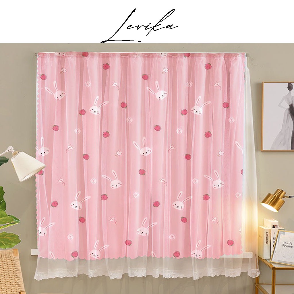 Nhà cửa & Đời sống > Trang trí nhà cửa > Rèm cửa, màn che || [Mã BMINC50 giảm 10% đơn 150K] Rèm cửa dán tường 2 lớp Levika họa tiết dễ thương, không khoan đục, chắc chắnCòn hàng