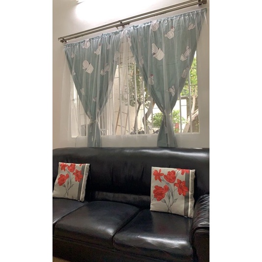 - Rèm được thiết kế 2 lớp: 1 lớp chống nắngin họa tiết hoa lá + 1 lớp voan.