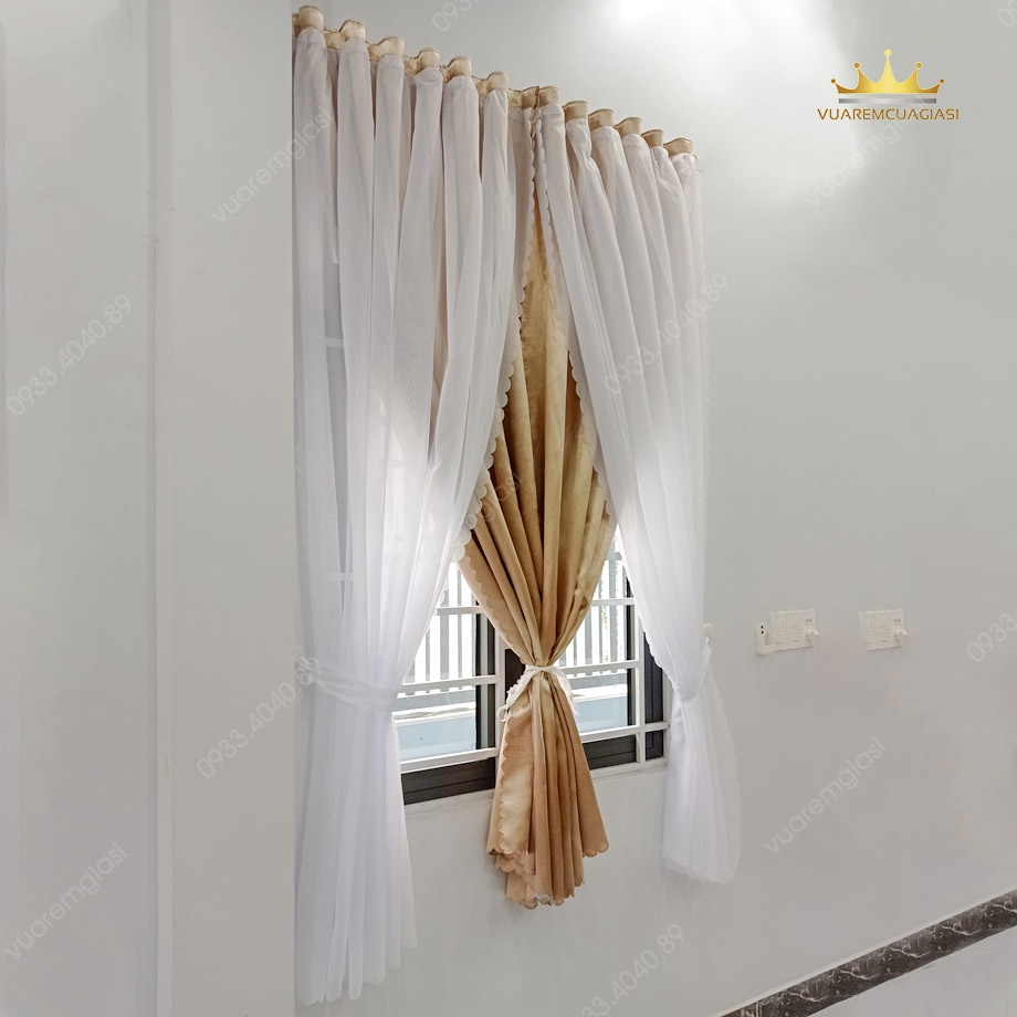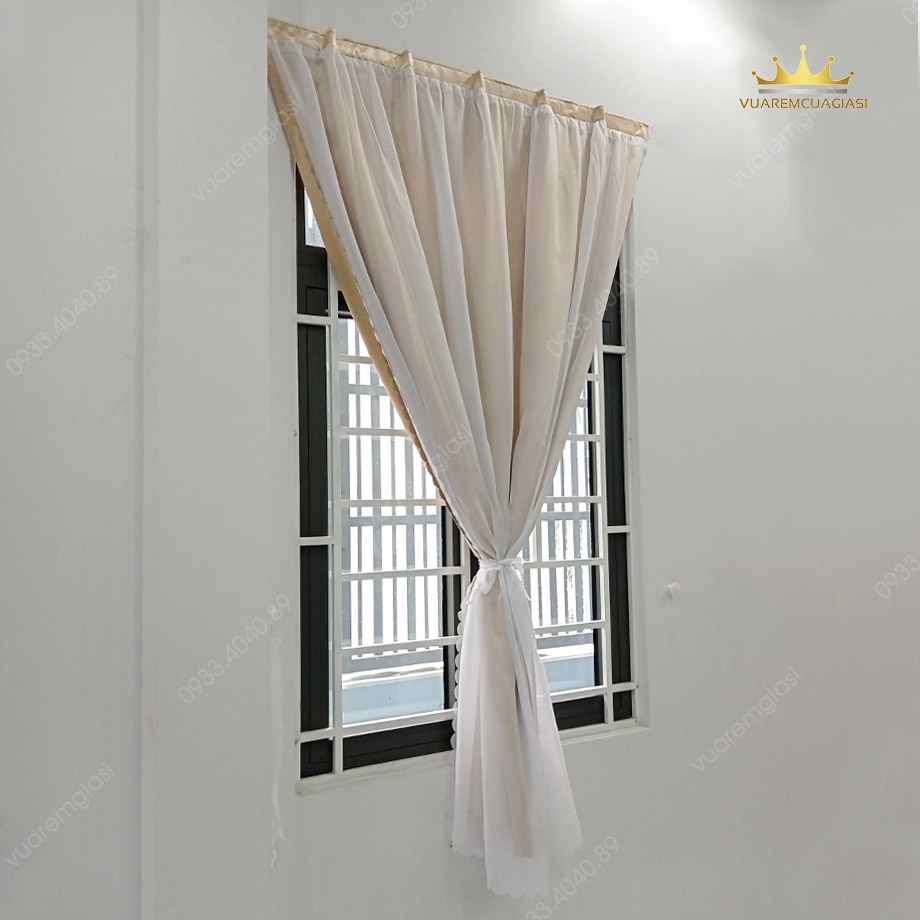 Rèm cửa dán tường 2 lớp vàng kem voan trắng chống nắng trang trí của sổ VIPDTVK vuaremgiasi