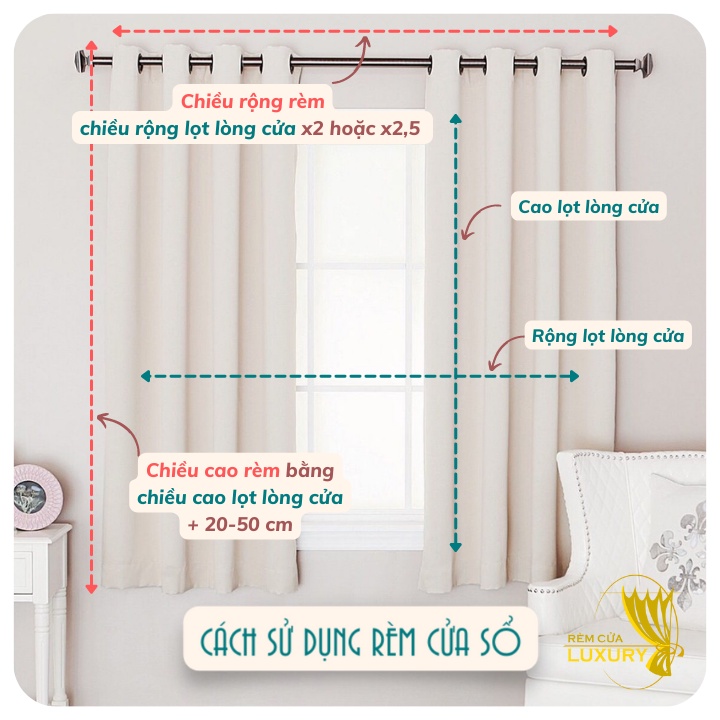 -Đối với rèm cửa sổ: Chiều cao rèm bằng chiều cao lọt lòng cửa cộng thêm 30-50 cm