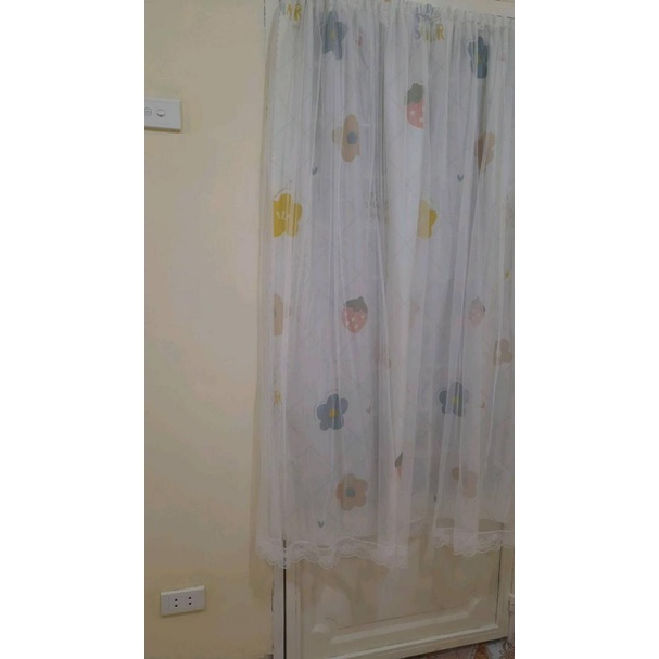 Nhà cửa & Đời sống > Trang trí nhà cửa > Rèm cửa, màn che || Rèm cửa dán tường Hoa trắng dâu tây 2 lớp họa tiết kute dán siêu chắc và bền- Gia Dụng Gia ÂnCòn hàng