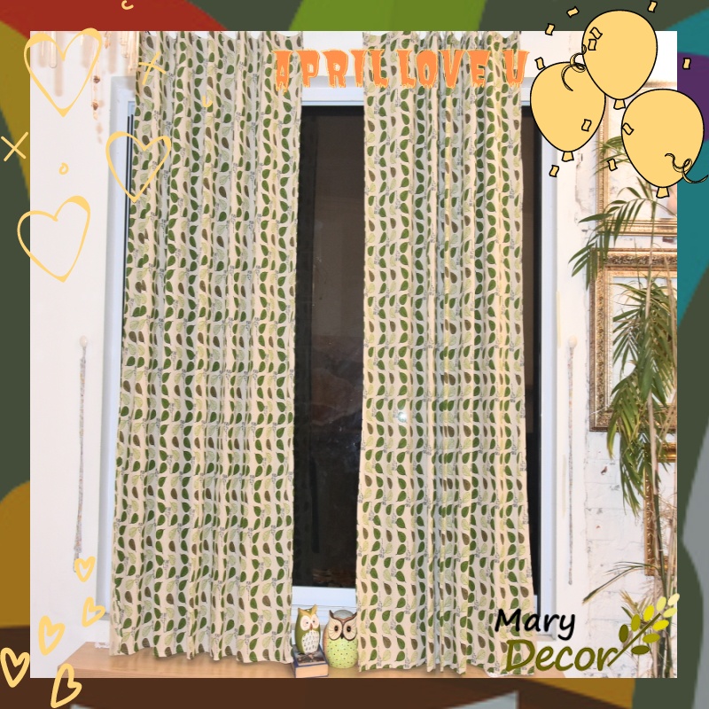 Nhà cửa & Đời sống > Trang trí nhà cửa > Rèm cửa, màn che || Rèm cửa dán tường khoen treo linh hoạt, họa tiết tươi mát che nắng cửa sổ và decor phòng ngủ giá rẻ Lá bodhi xanh R-E04Còn hàng