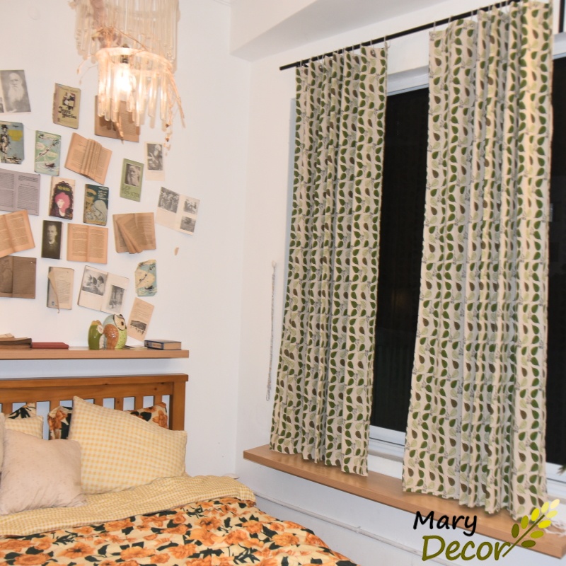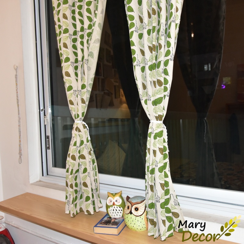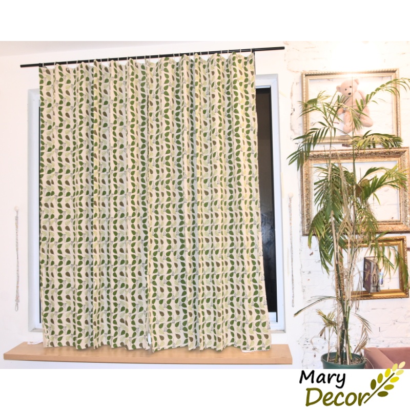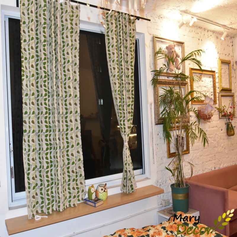 Giới thiệu Rèm cửa dán tường khoen treo linh hoạt, họa tiết tươi mát che nắng cửa sổ và decor phòng ngủ giá rẻ Lá bodhi xanh R-E04