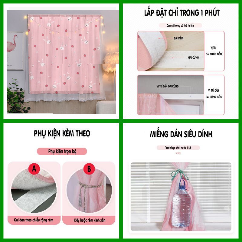 Được tặng kèm miếng dán tường và dây buộc rèm