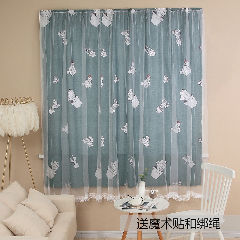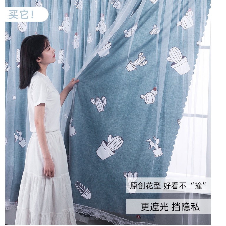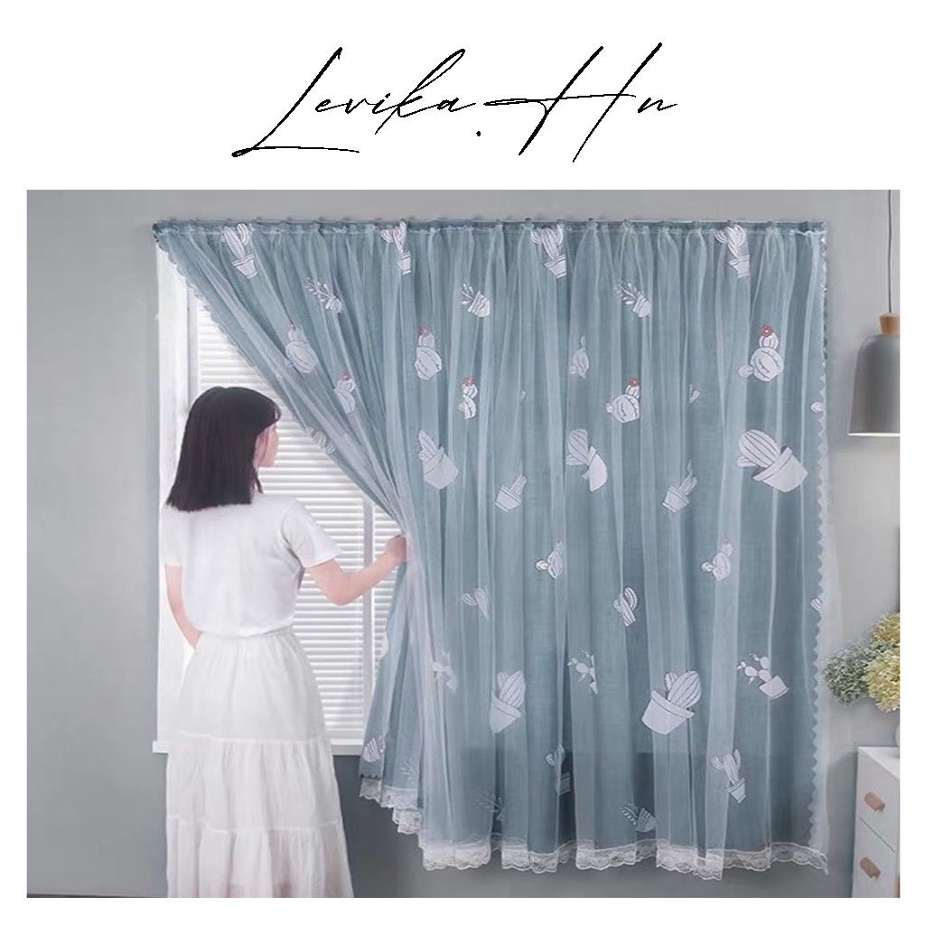 Nhà cửa & Đời sống > Trang trí nhà cửa > Rèm cửa, màn che || Rèm cửa dán tường LEVIKA.HN Xanh khói nhạt họa tiết xương rồng che nắng cửa sổ, decor phòng ngủCòn hàng