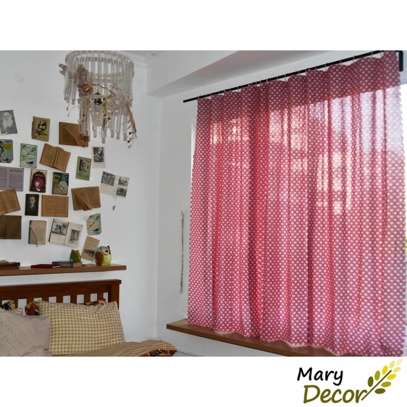 Giới thiệu Rèm cửa dán tường rèm cửa sổ phòng ngủ quây giường ký túc xá vải canvas họa tiết vintage Trái tim trắng nền đỏ R-I06