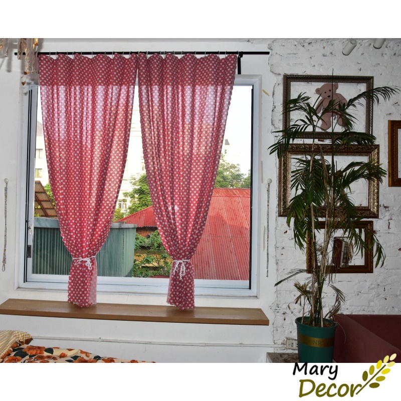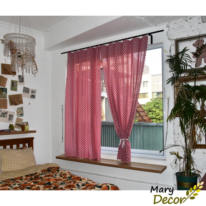 Rèm cửa dán tường rèm cửa sổ phòng ngủ quây giường ký túc xá vải canvas họa tiết vintage Trái tim trắng nền đỏ R-I06