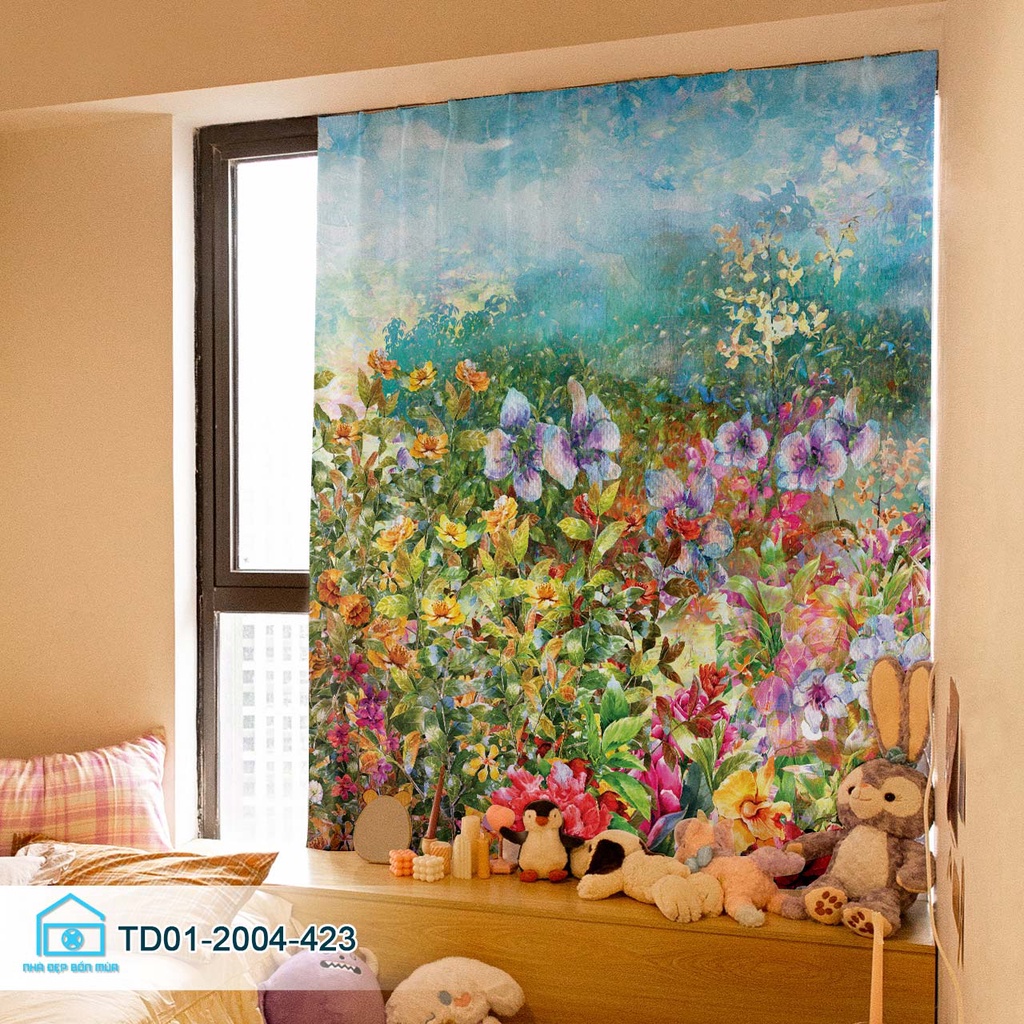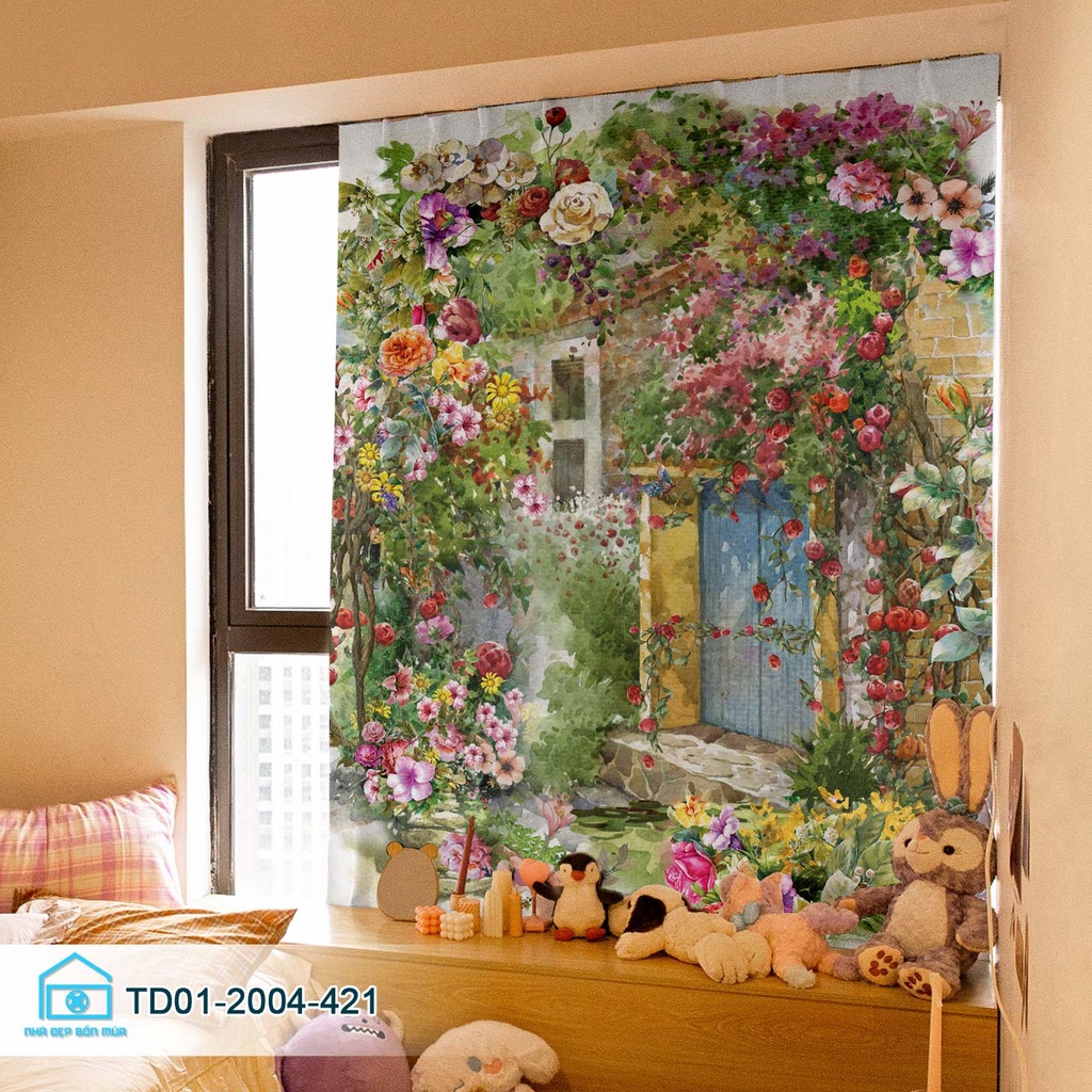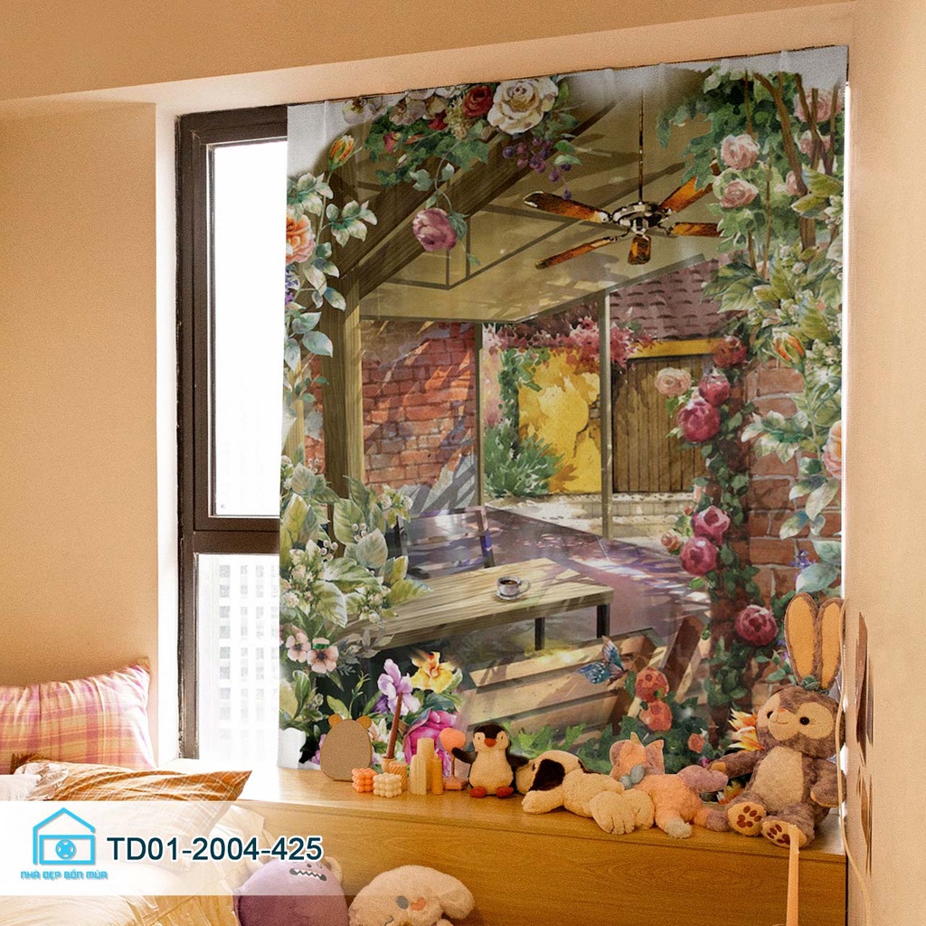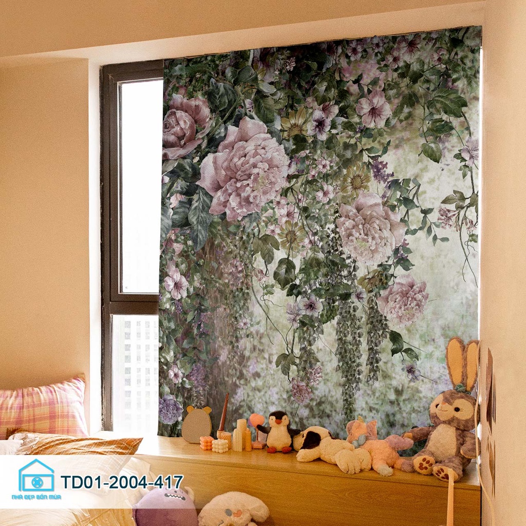Rèm cửa dán tường tiện lợi Tín Phát decor vườn hoa cổ tích thơ mộng