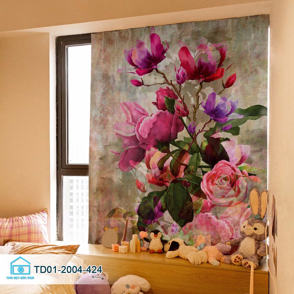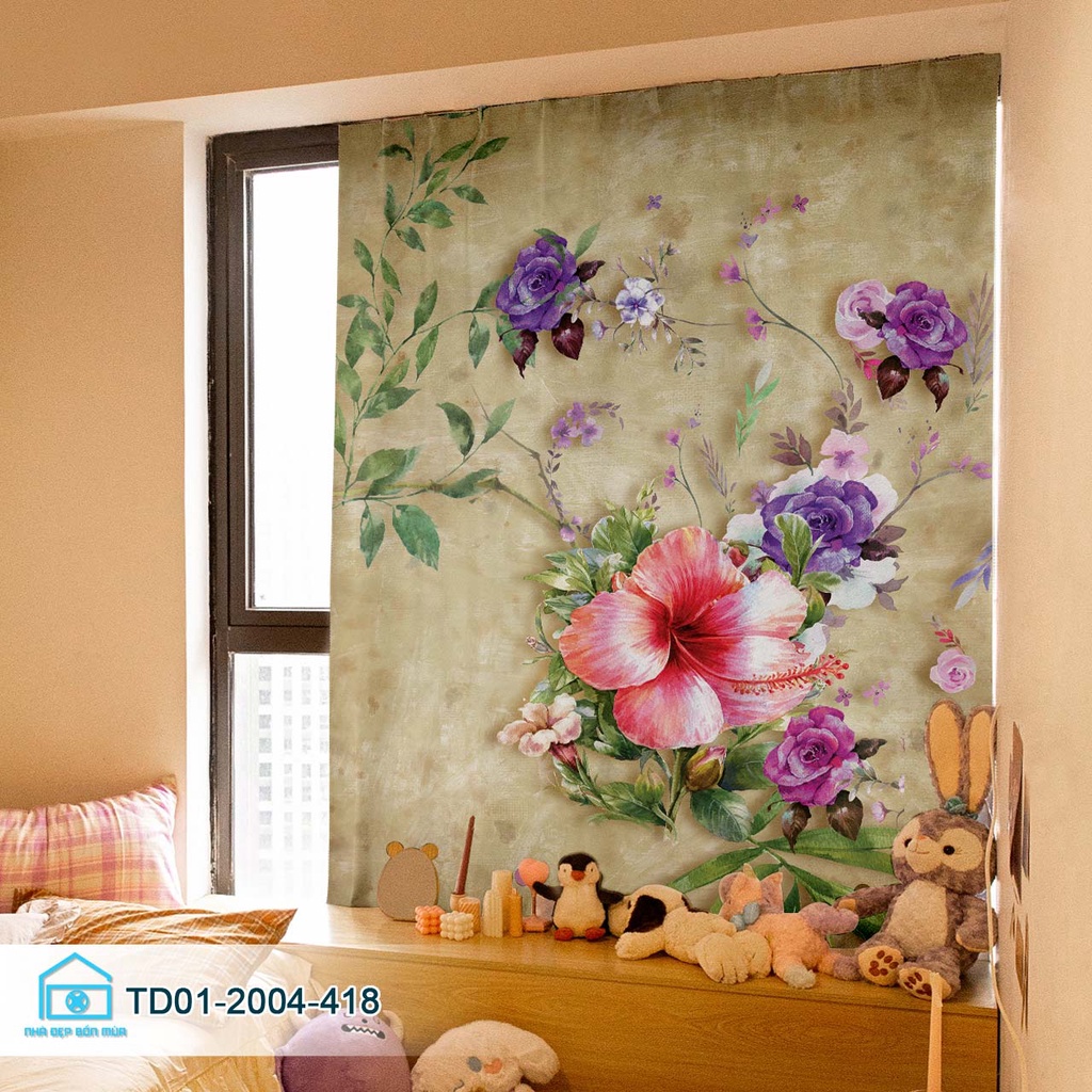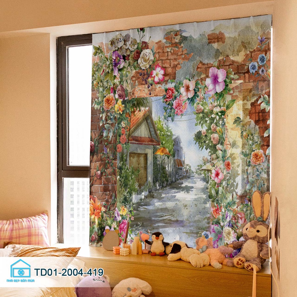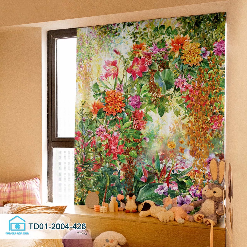 Rèm cửa dán tường tiện lợi Tín Phát decor vườn hoa cổ tích thơ mộng