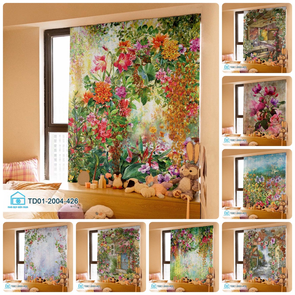 Nhà cửa & Đời sống > Trang trí nhà cửa > Rèm cửa, màn che || Rèm cửa dán tường tiện lợi Tín Phát decor vườn hoa cổ tích thơ mộngCòn hàng