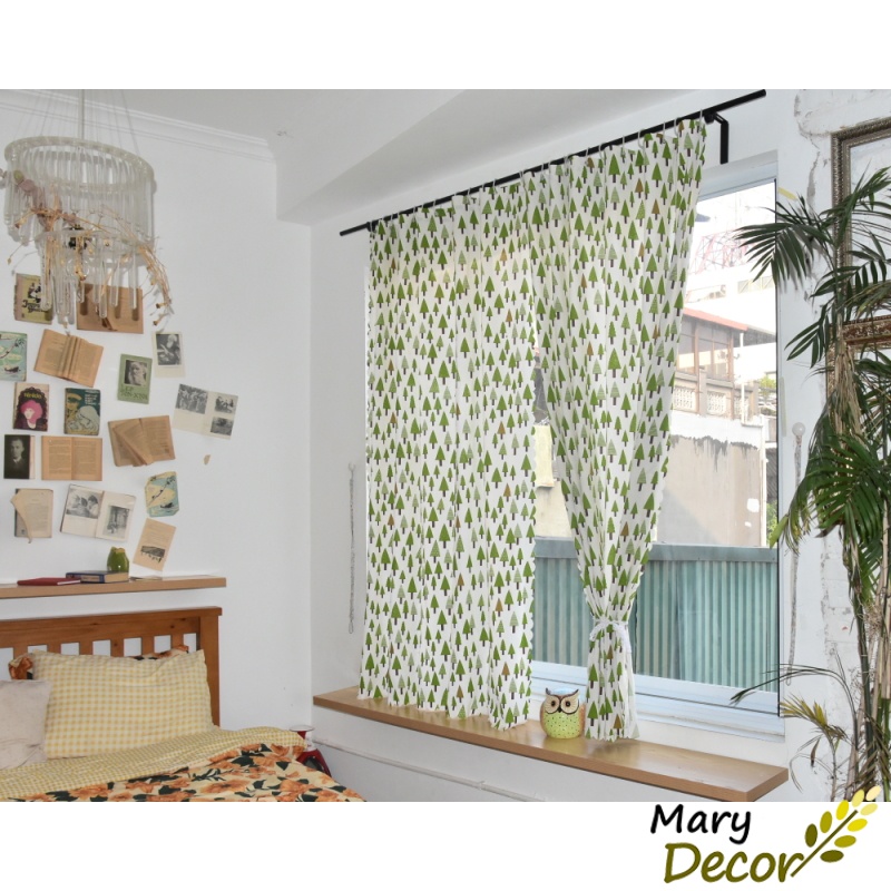 Nhà cửa & Đời sống > Trang trí nhà cửa > Rèm cửa, màn che || Rèm Cửa Dán Tường Treo Thanh Linh Hoạt Chống Nắng Không Cần Khoan, Chất Liệu Vải Canvas vintage Cây thông R-D07Còn hàng