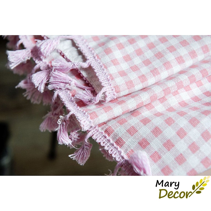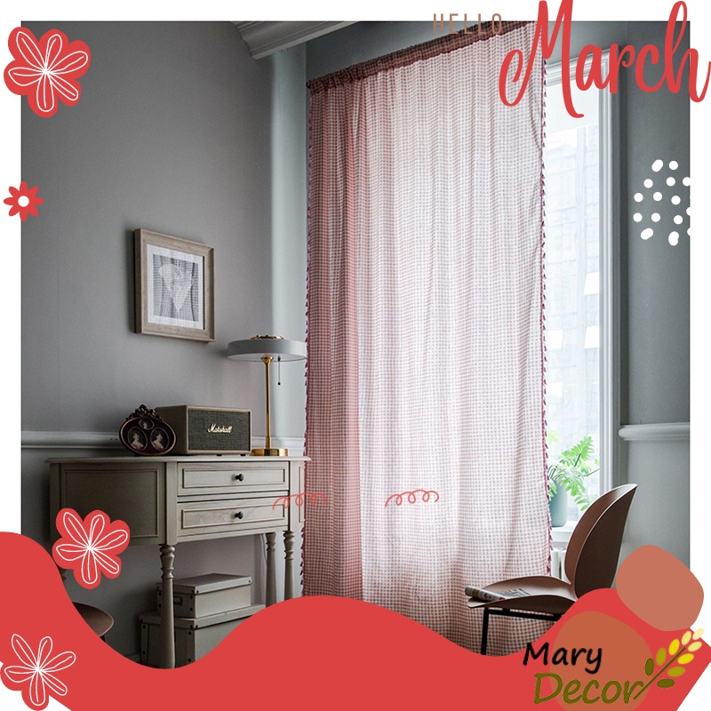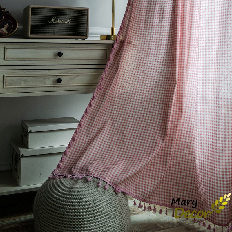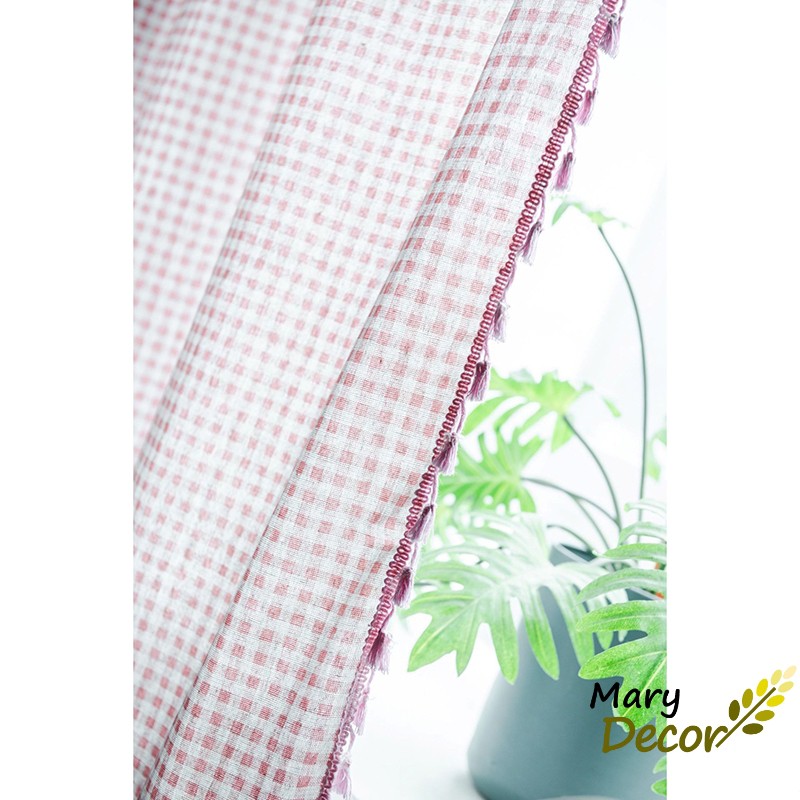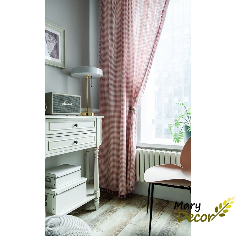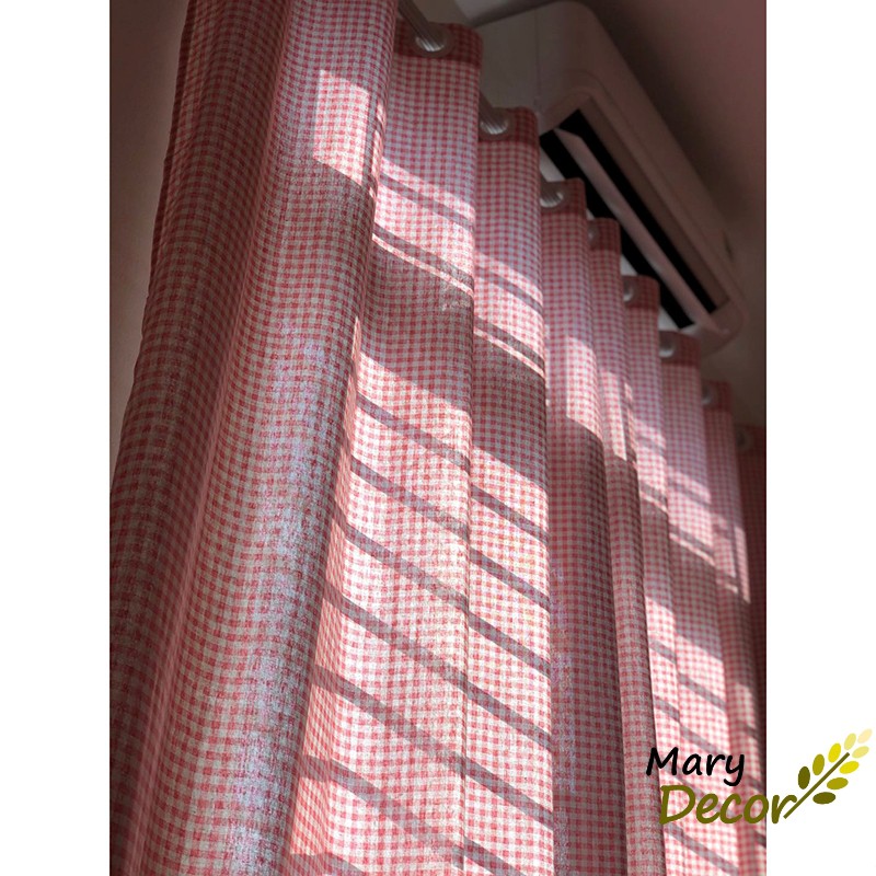 Rèm cửa đẹp decor trang trí nhà cửa nhiều mẫu mã - họa tiết Caro hồng R-B06 (vui lòng nhắn để chọn viền rèm)