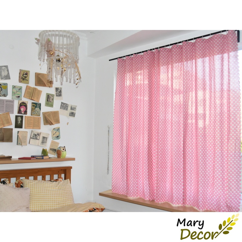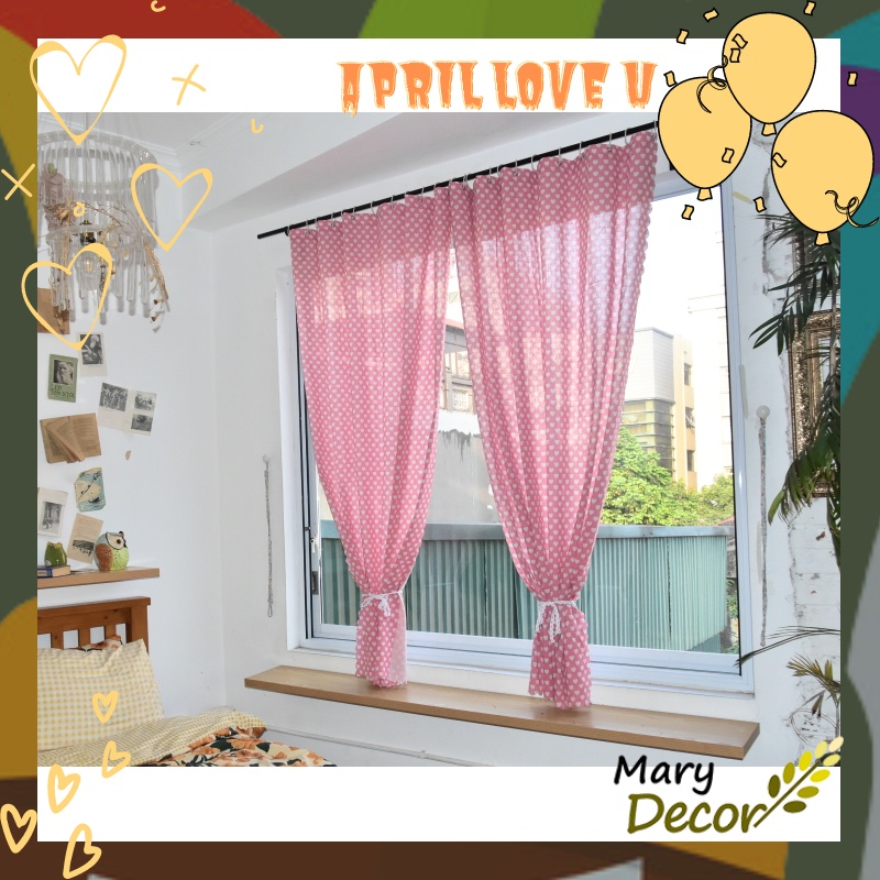Nhà cửa & Đời sống > Trang trí nhà cửa > Rèm cửa, màn che || Rèm cửa đẹp trang trí vải bố linen đậm chất vintage - họa tiết trái tim trắng nền hồng R-I05Còn hàng