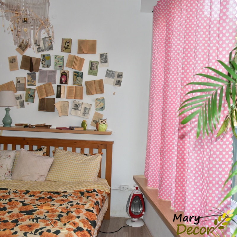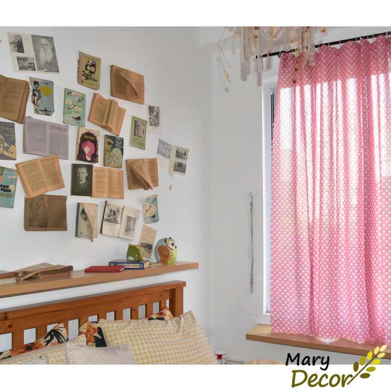 Giới thiệu Rèm cửa đẹp trang trí vải bố linen đậm chất vintage - họa tiết trái tim trắng nền hồng R-I05