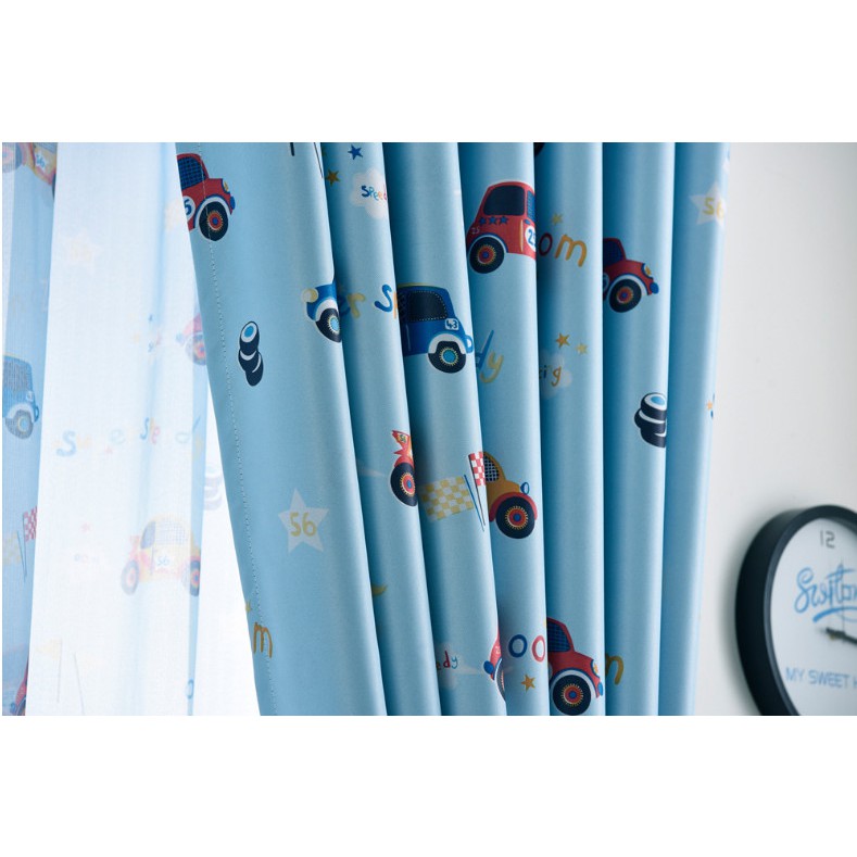 * Mẫu rèm với họa tiết xe ô tô xanh rất được tầm mắt của các bé yêu thích dù bé trai hay gái ạ, rèm cửa giúp che nắng cản sáng rất tốt.