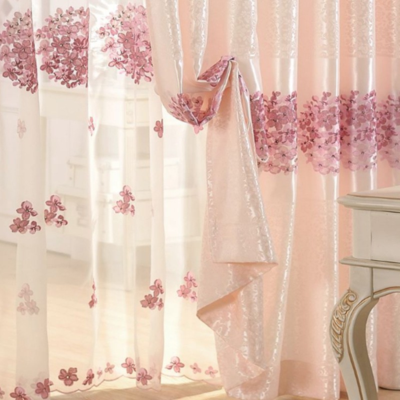 Giới thiệu Rèm cửa hoa cẩm tú cầu hồng nhiều kích thước ( không có lớp voan )