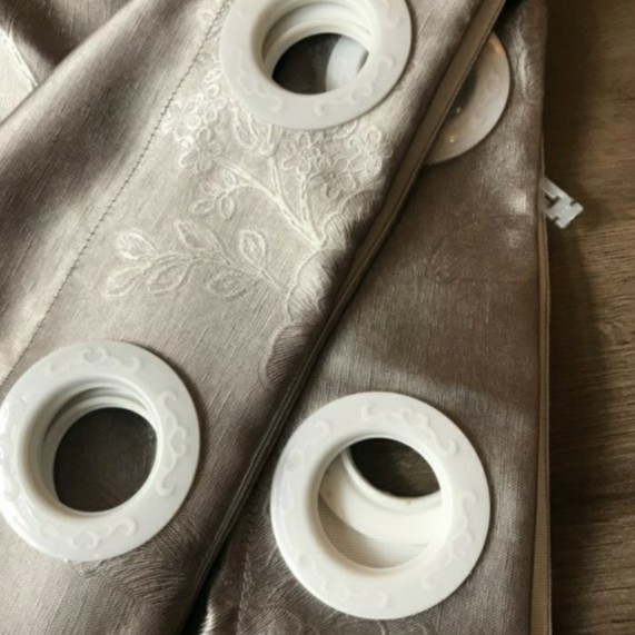** Sản phẩm là rèm vải may sẵn, đục lỗ và có khoen tròn,đường kính lỗ 4.5cm.