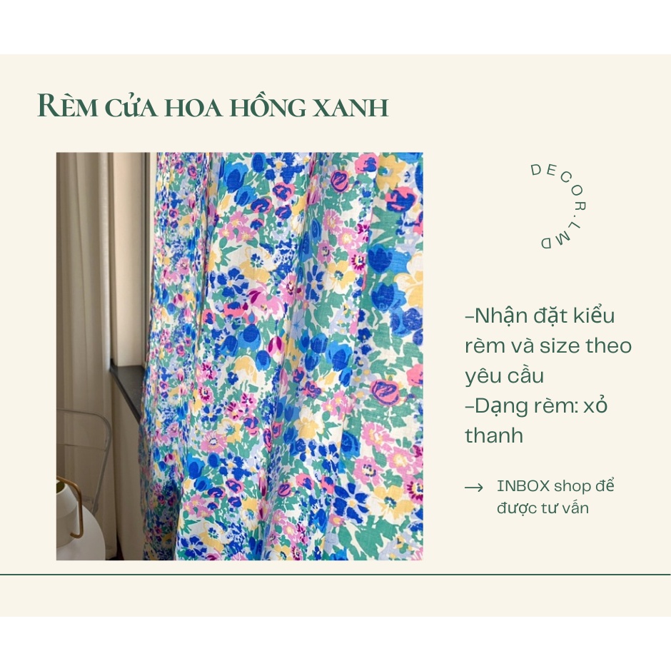 Rèm cửa hoa hồng xanh phong cách hiện đại, chống nắng cao cấp, màn vải treo tường trang trí decor phòng ngủ