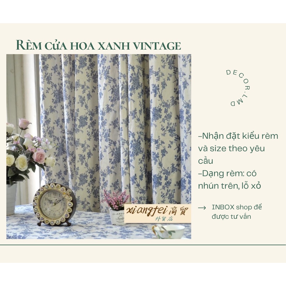 Rèm cửa hoa xanh vintage ,phong cách vintage chống nắng cao cấp, màn vải treo tường trang trí decor phòng ngủ