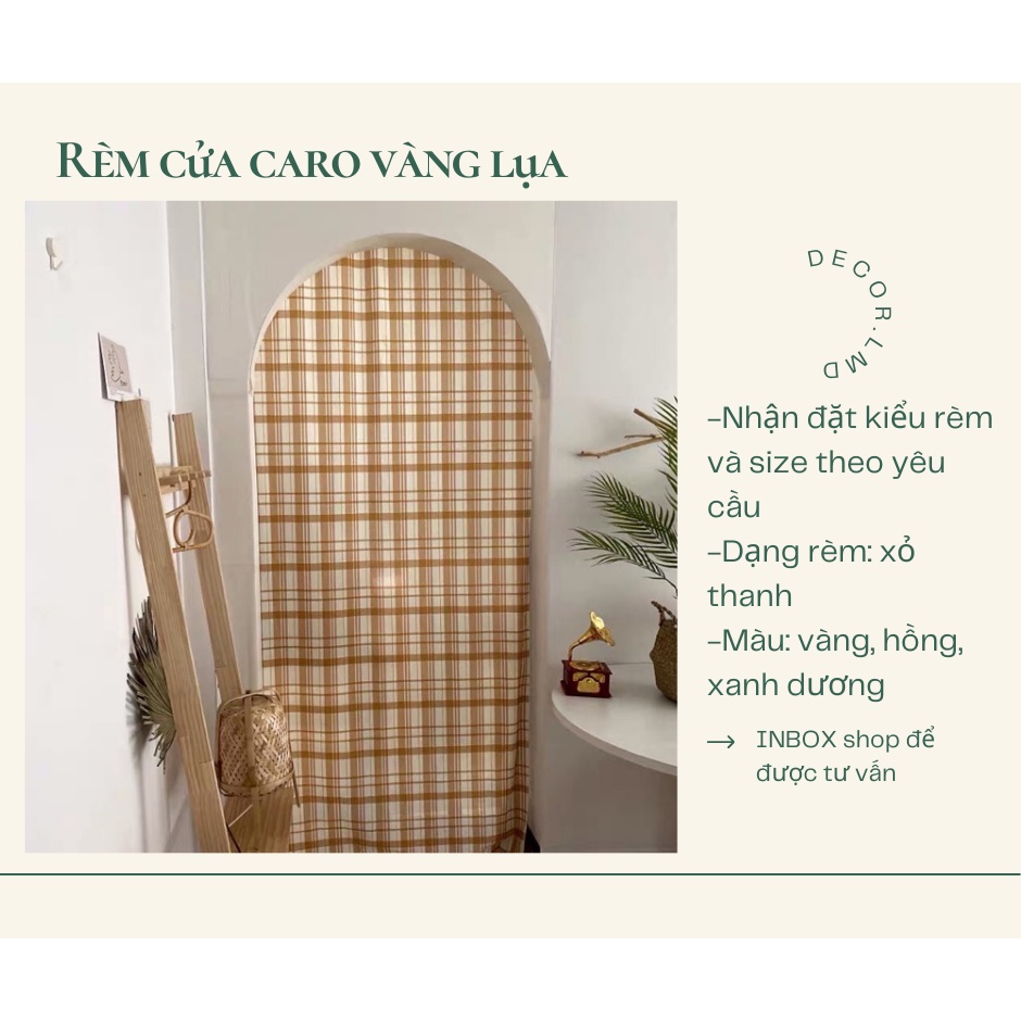 Rèm cửa kẻ caro vàng ,phong cách Hàn Quốc chống nắng cao cấp, màn vải treo tường trang trí decor phòng ngủ