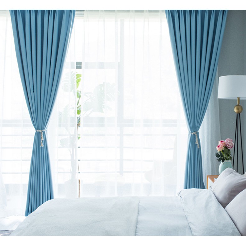 Rèm cửa khoen lỗ che nắng màu xanh dương mới nhiều size