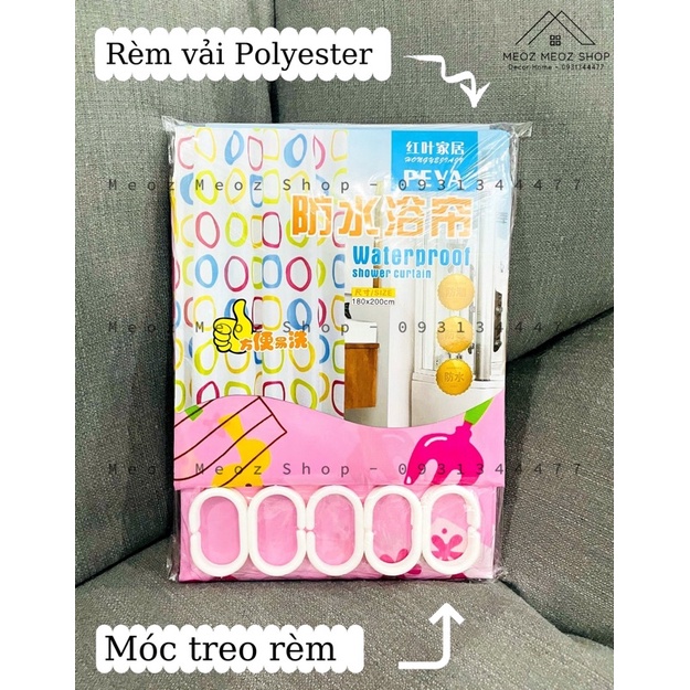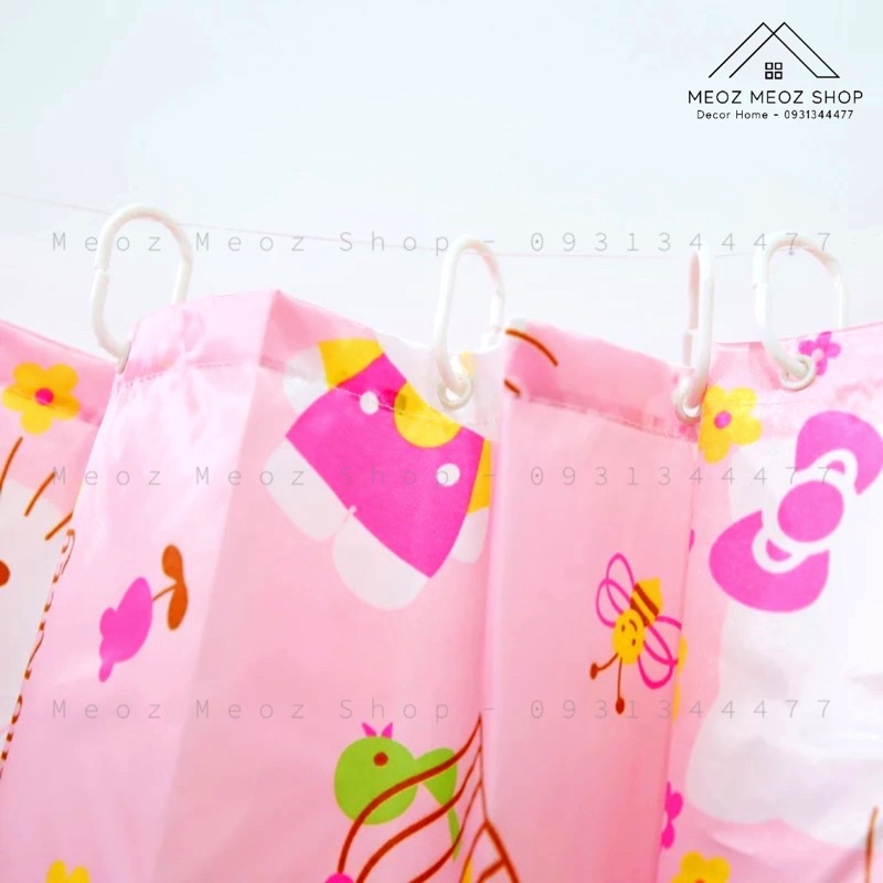 RÈM CỬA KITTY 1m8*2m KÈM MÓC TREO RÈM- Chất vải polyester chống thấm nước, có thể treo ở wc