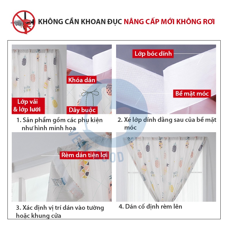 Được tặng kèm miếng dán tường và dây buộc rèm