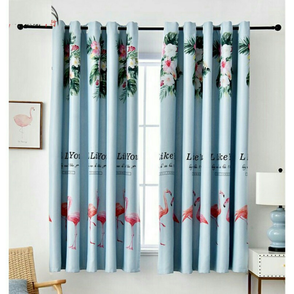 Nhà cửa & Đời sống > Trang trí nhà cửa > Rèm cửa, màn che || Rèm cửa rèm che nắng họa tiết chim hạc hồng nền xanh kèm lá xanh - cao 2m(nhiều size)Còn hàng
