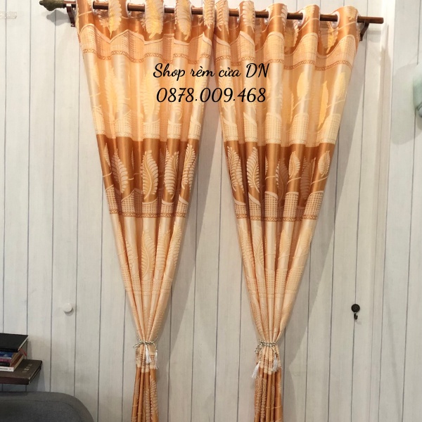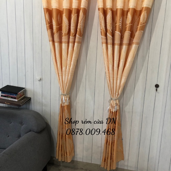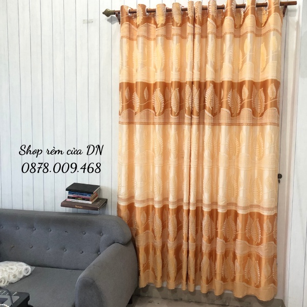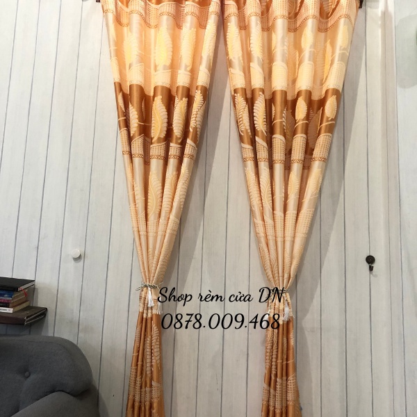 Rèm cửa,rèm cửa sổ chống nắng,vải gấm hoa văn chiếc lá vàng siêu đẹp may sẳn tặng kèm dây vén xịn.
