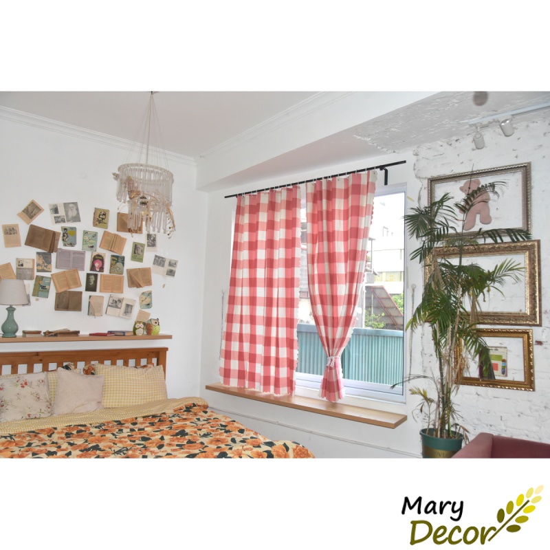 Rèm Cửa Sổ Cao Cấp, Rèm Cửa Chống Nắng, Vải Treo Tường Trang Trí Decor Cửa Chất Liệu Cotton Caro Cam Đỏ R-CC23