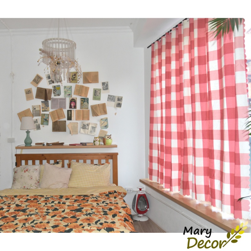 Nhà cửa & Đời sống > Trang trí nhà cửa > Rèm cửa, màn che || Rèm Cửa Sổ Cao Cấp, Rèm Cửa Chống Nắng, Vải Treo Tường Trang Trí Decor Cửa Chất Liệu Cotton Caro Cam Đỏ R-CC23Còn hàng