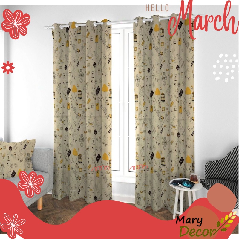 Nhà cửa & Đời sống > Trang trí nhà cửa > Rèm cửa, màn che || Rèm cửa sổ chống nắng cực đẹp cực rẻ - họa tiết vintage hành lý R-K05Còn hàng