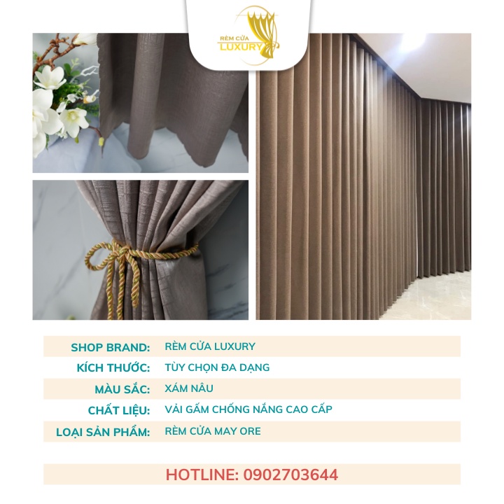 Rèm cửa sổ chống nắng màu xám nâu trang trí decor phòng ngủ phòng khách LUX17