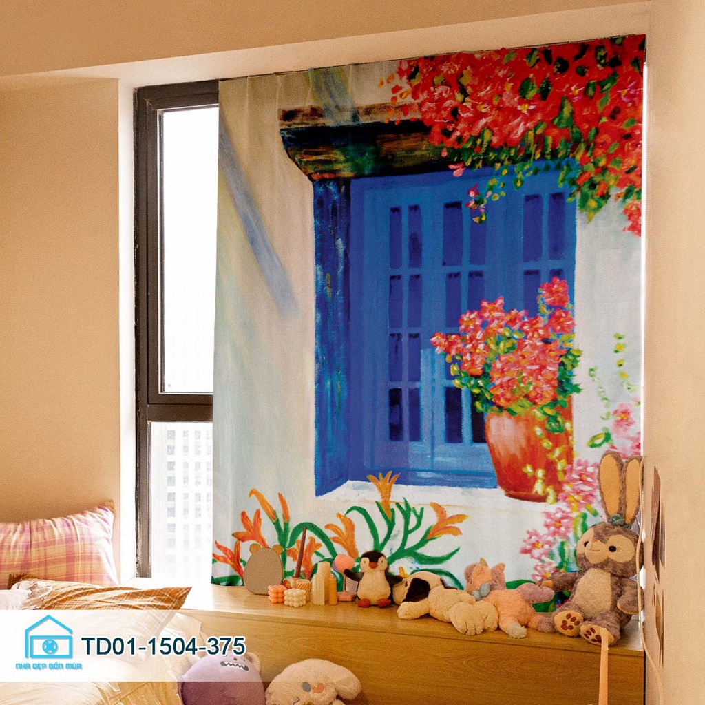 Giới thiệu Rèm cửa sổ dán tường bình hoa, khung cửa sổ chill Tín Phát Decor, màn cửa dán tường tiện lợi