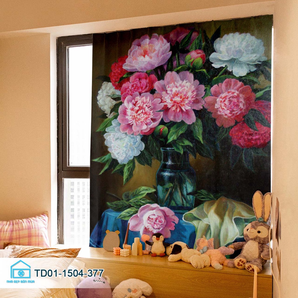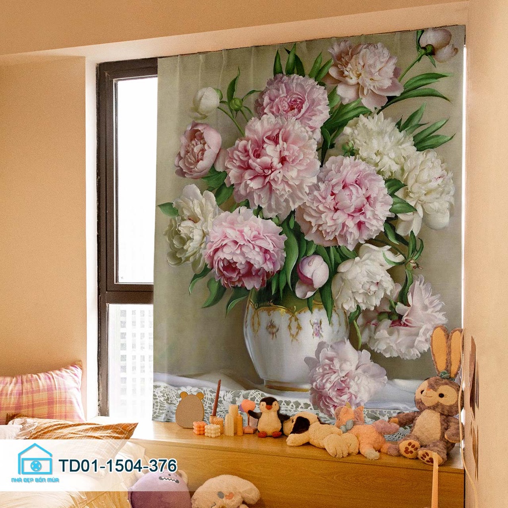 Rèm cửa sổ dán tường bình hoa, khung cửa sổ chill Tín Phát Decor, màn cửa dán tường tiện lợi