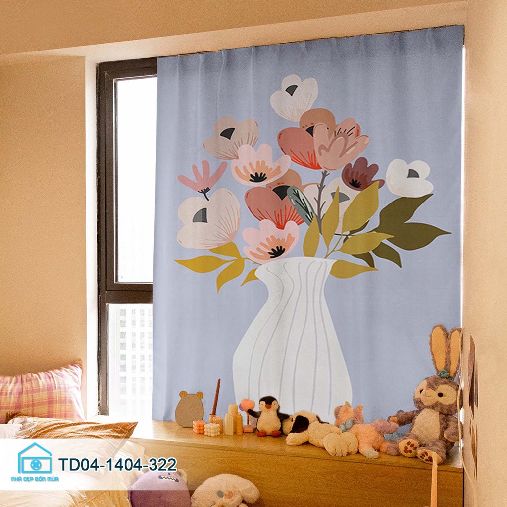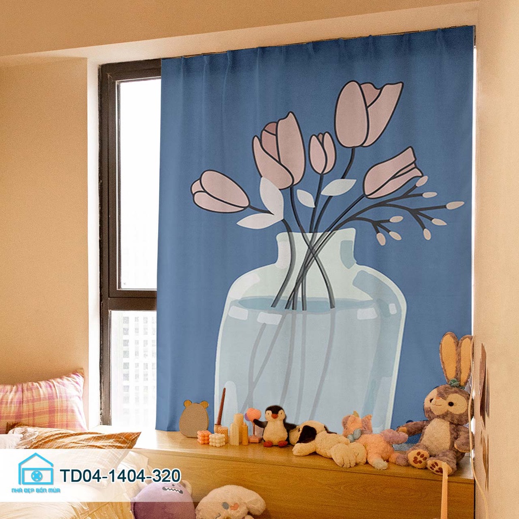 Rèm cửa sổ dán tường bình hoa trang trí Tín Phát Decor, màn cửa sổ chống năng dễ lắp
