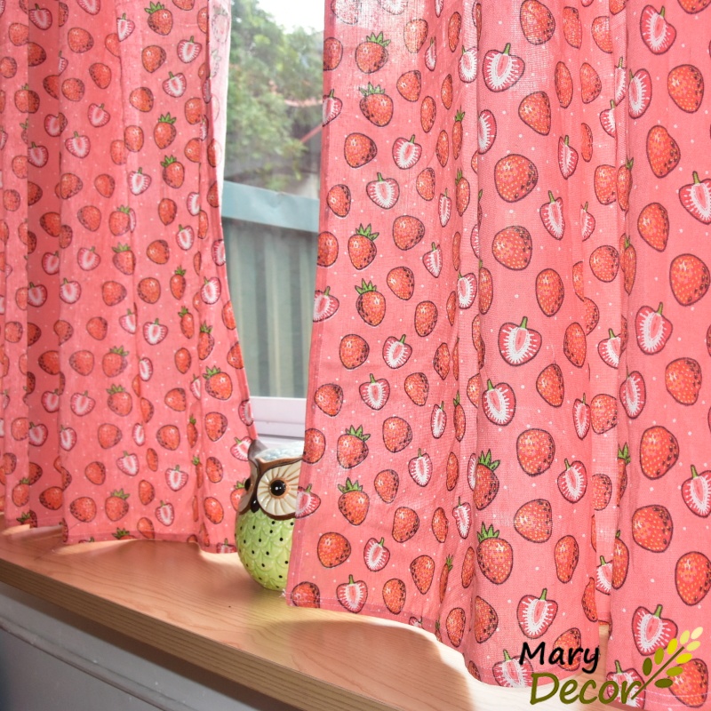Rèm Cửa Sổ ❤️FREESHIP❤️ dán tường treo thanh linh hoạt In Họa Tiết Hoạt Hình Dễ Thương Dâu tây R-D01