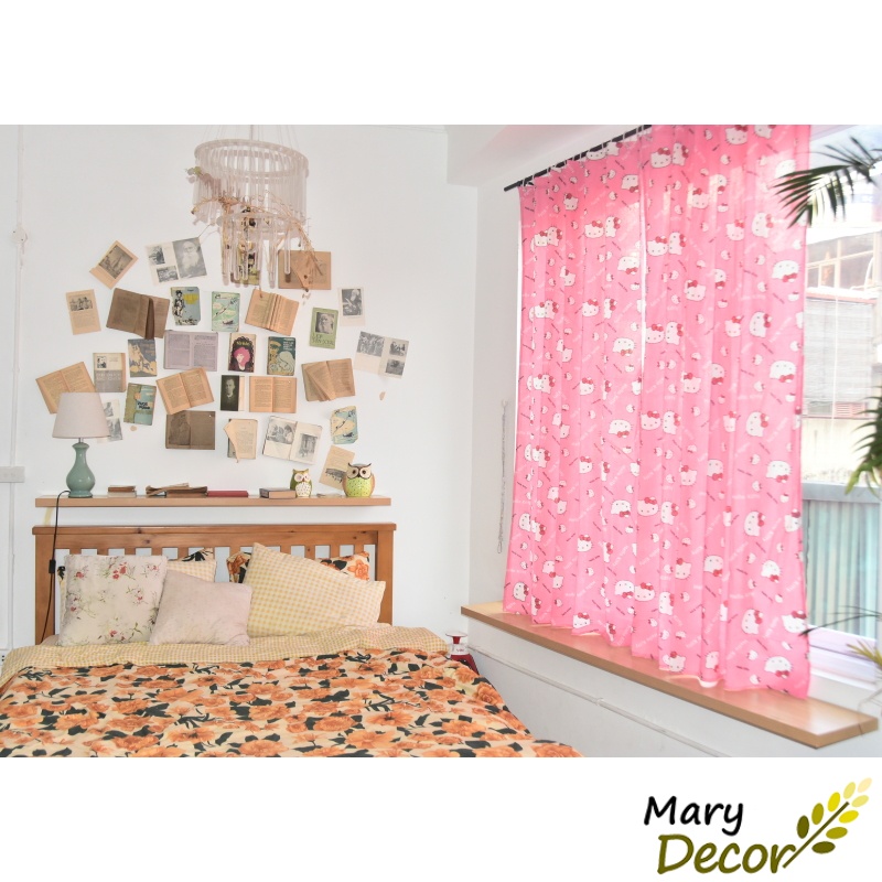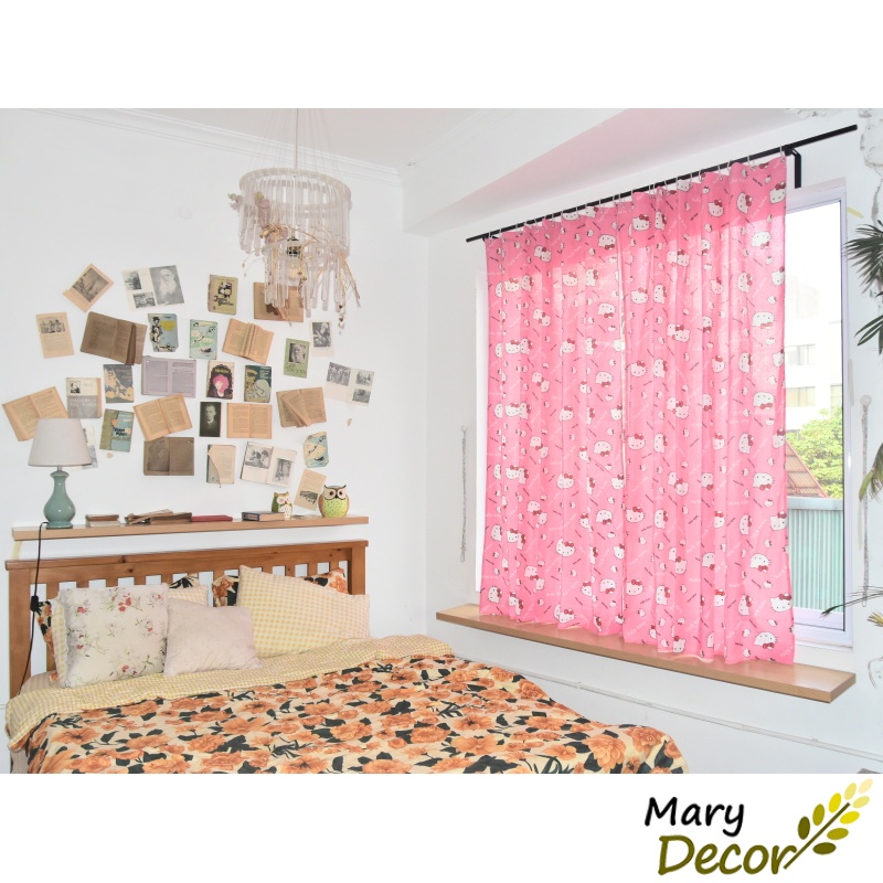 Giới thiệu Rèm Cửa Sổ ❤️FREESHIP❤️ dán tường treo thanh In Họa Tiết Hoạt Hình Dễ Thương nhiều kích thước Mèo Hello Kitty Hồng R-M08