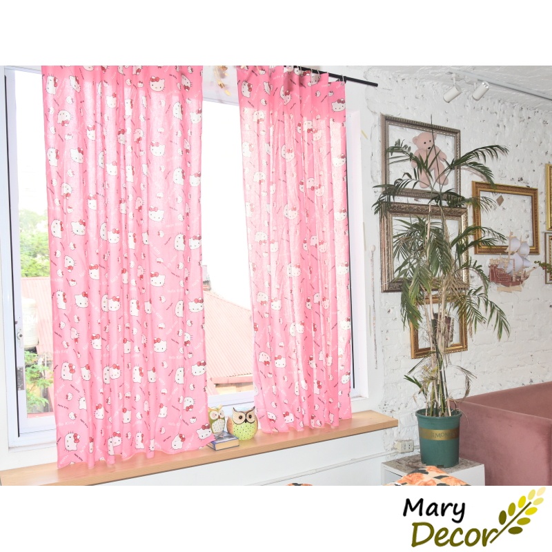 Rèm Cửa Sổ ❤️FREESHIP❤️ dán tường treo thanh In Họa Tiết Hoạt Hình Dễ Thương nhiều kích thước Mèo Hello Kitty Hồng R-M08