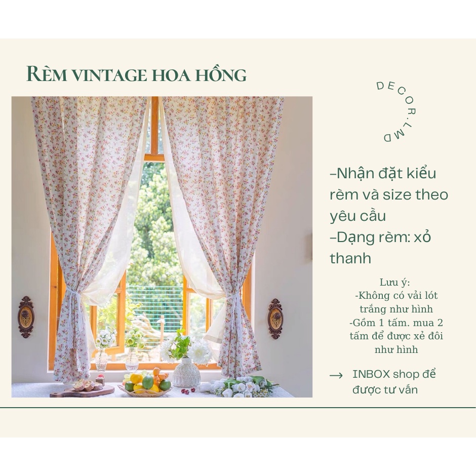 Rèm cửa sổ họa tiết hoa hồng vintage, rèm vải hoa xinh xắn trang trí decor phòng ngủ, màn chống nắng cao cấp
